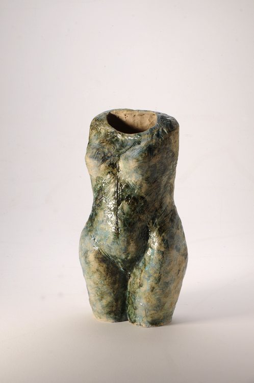 Cool Blue Girl is a beautiful calm figure. For some reason she didn't seem to need a head, maybe because the colours and glazes on the torso are so lovely in themselves. As she is open at the top she could be used as a planter, or even a vase, using a plastic bottle inside. She is fired to stoneware, and fired five times to get the texture and the tones just right! In fact, the final firing was to change the internal colour to a sea-blue shade. Like my other larger figures, Cool Blue Girl is coiled as a hollow form, and works as well in the garden as indoors. She is not too heavy to lift, so you can change your mind about where she looks best!