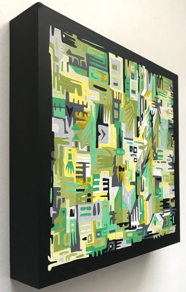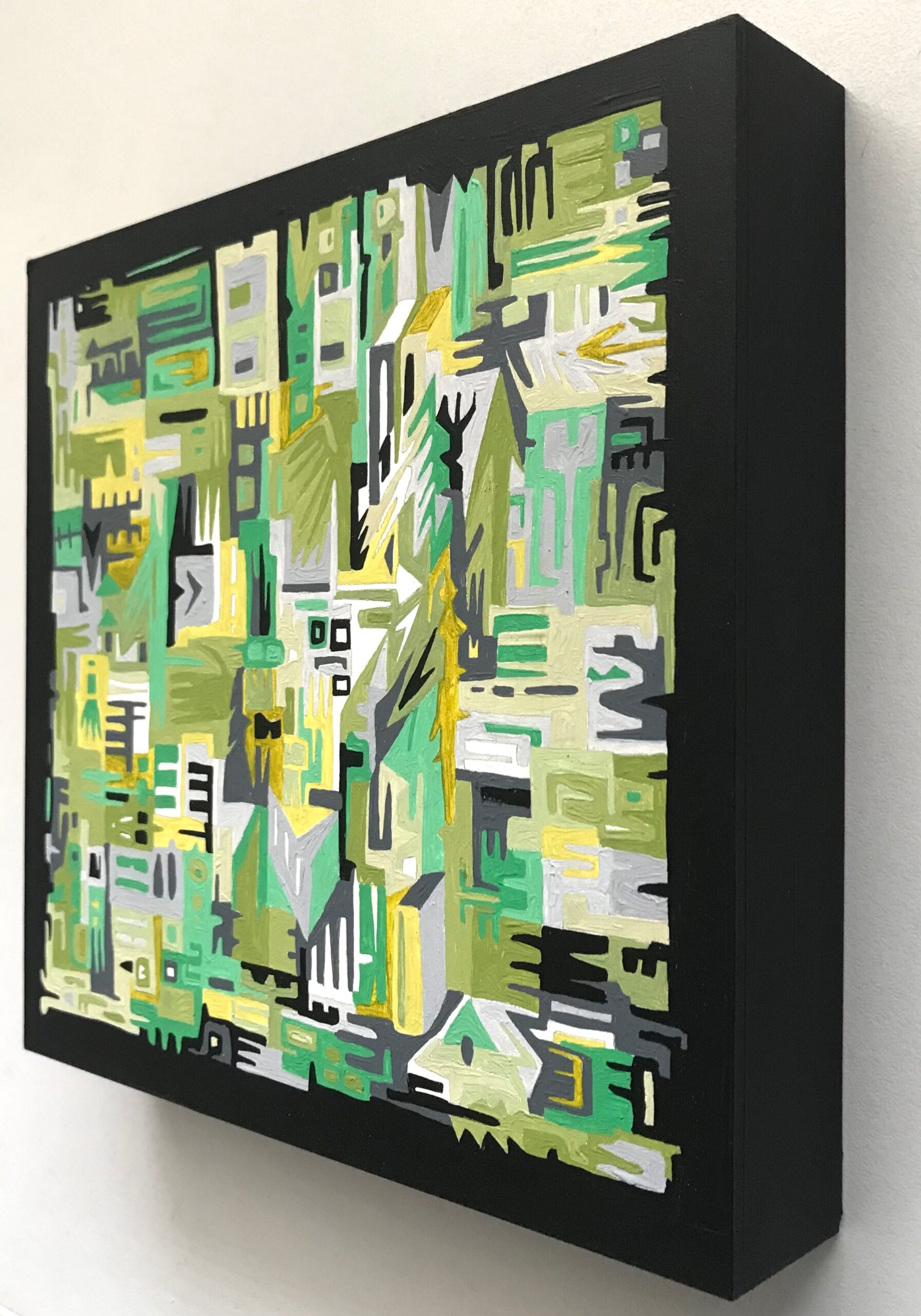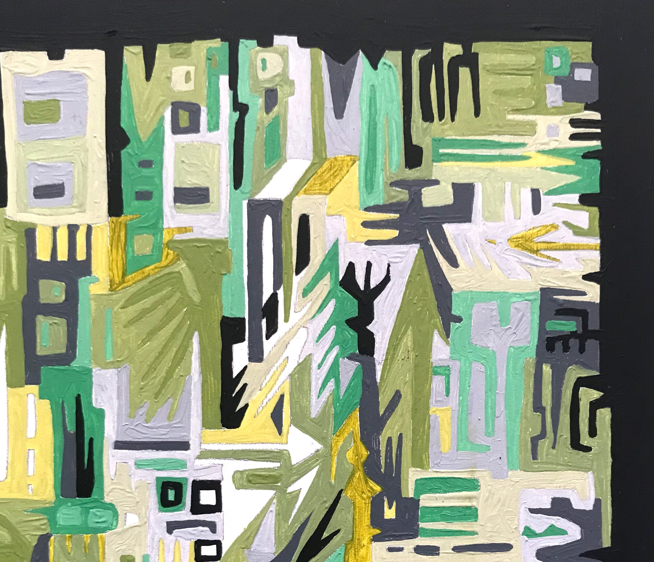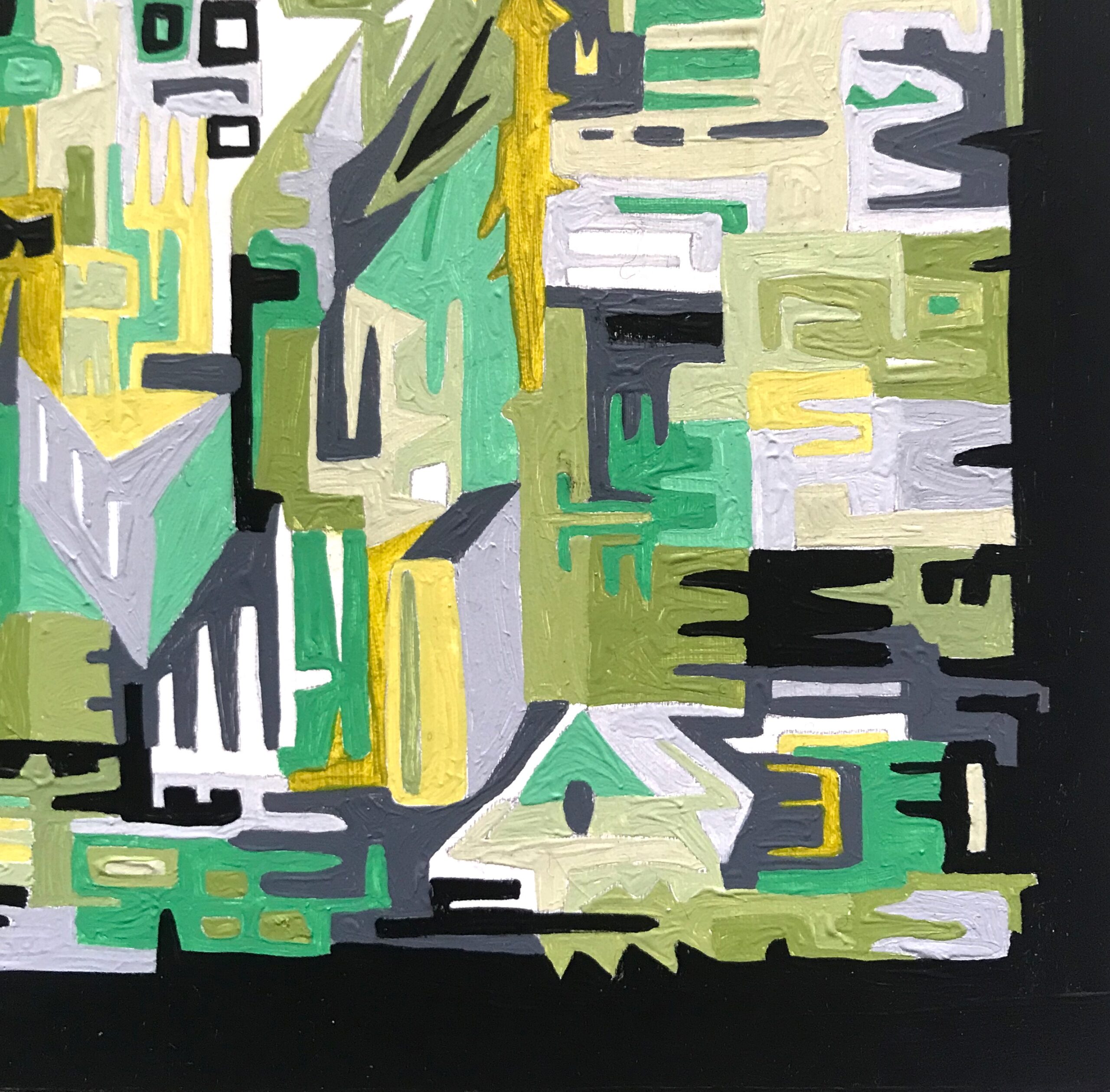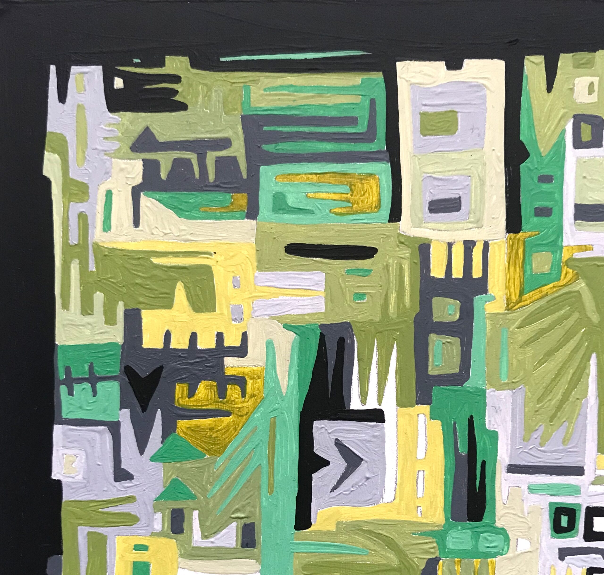 The shapes and colours here borrow heavily from those of late summer/early autumn or nearing harvest time (around when I started work on this, among other pieces). It's now finished and marks the culmination of several months of hard graft in different areas for me. From moving studio, planning, organising, designing, requesting, borrowing, promoting, selling, and of course painting. All of this is an absolute pleasure and I wouldn't have it any other way! Make hay while the sun shines and all that..... Acrylic on cradled wooden panel.